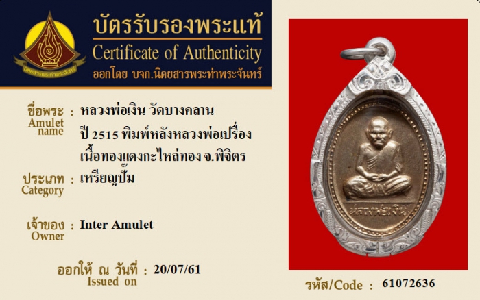 ค้นหาใบการันตีพระแท้