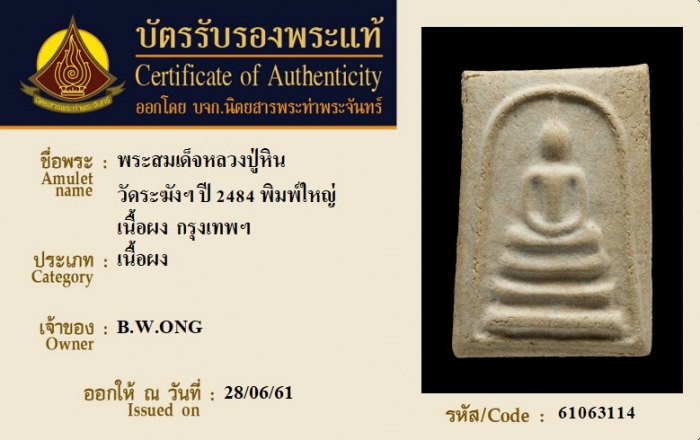 ค้นหาใบการันตีพระแท้