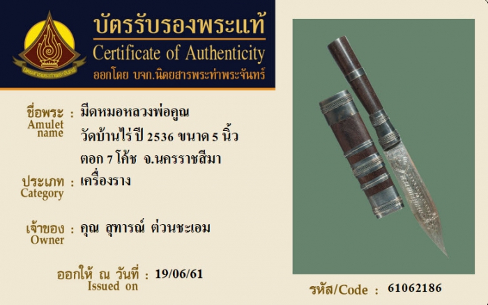 ค้นหาใบการันตีพระแท้