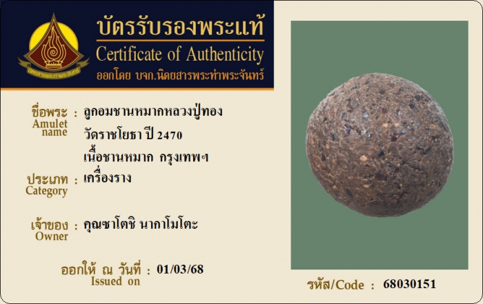ค้นหาใบการันตีพระแท้