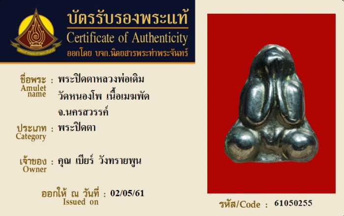 ค้นหาใบการันตีพระแท้