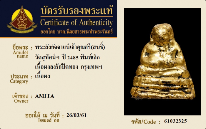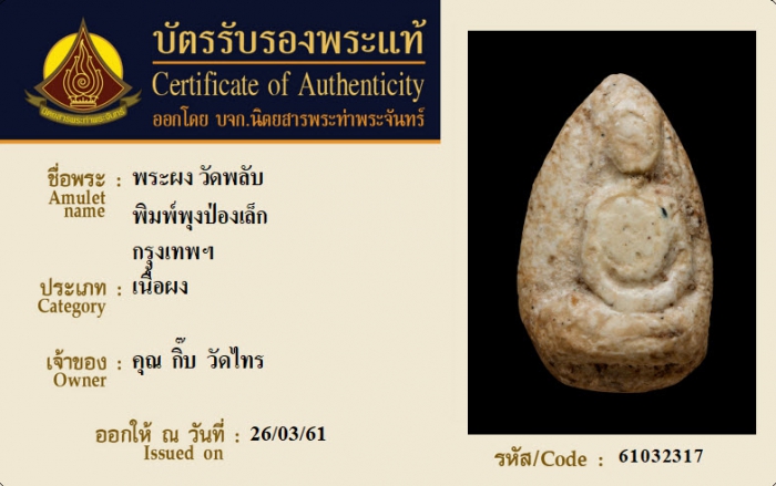 ค้นหาใบการันตีพระแท้