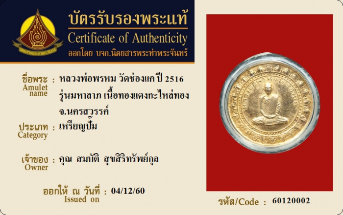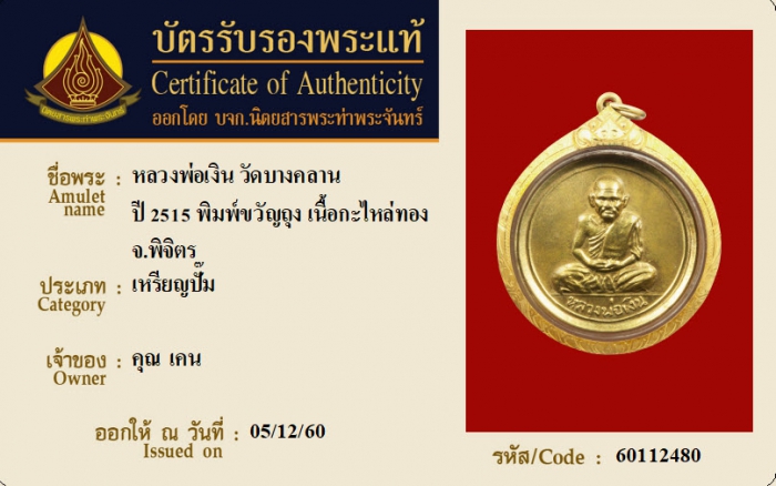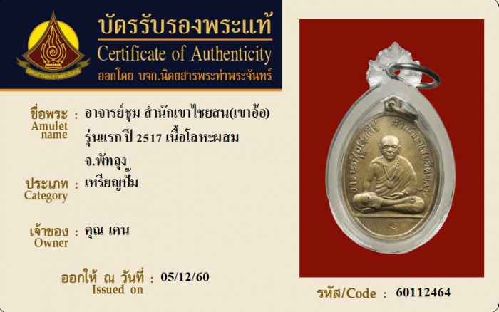 ค้นหาใบการันตีพระแท้