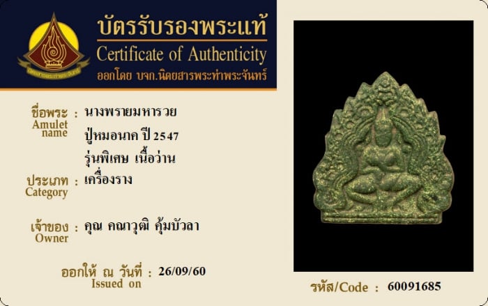 ค้นหาใบการันตีพระแท้