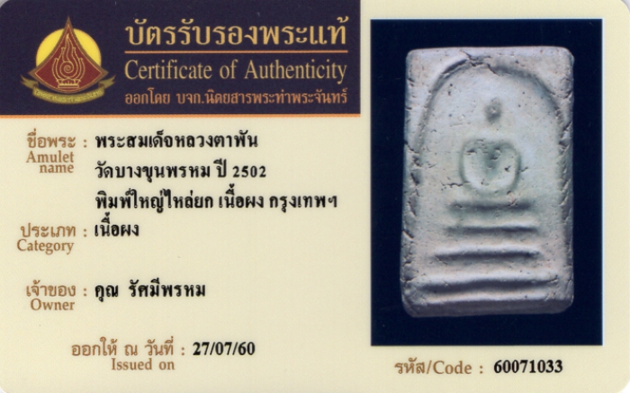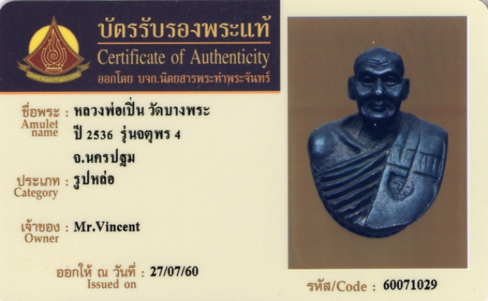 ค้นหาใบการันตีพระแท้