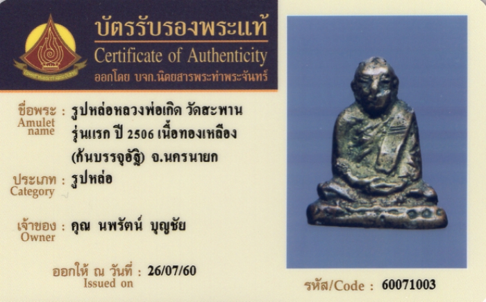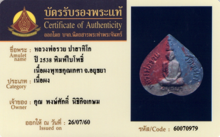 ค้นหาใบการันตีพระแท้