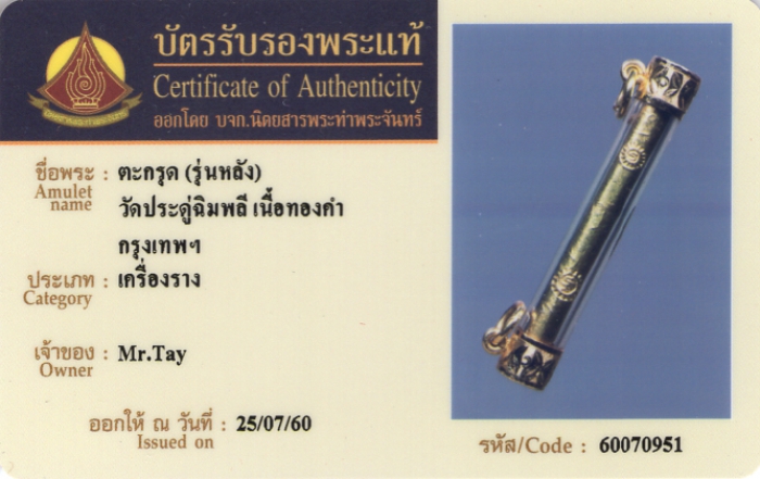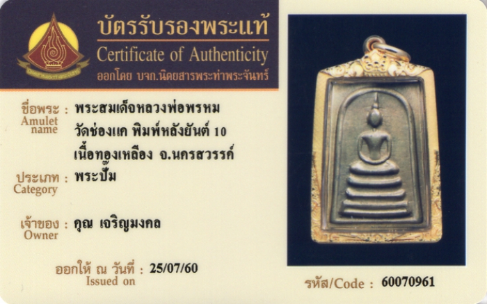 ค้นหาใบการันตีพระแท้