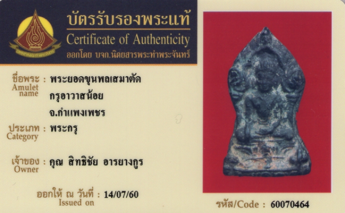 ค้นหาใบการันตีพระแท้