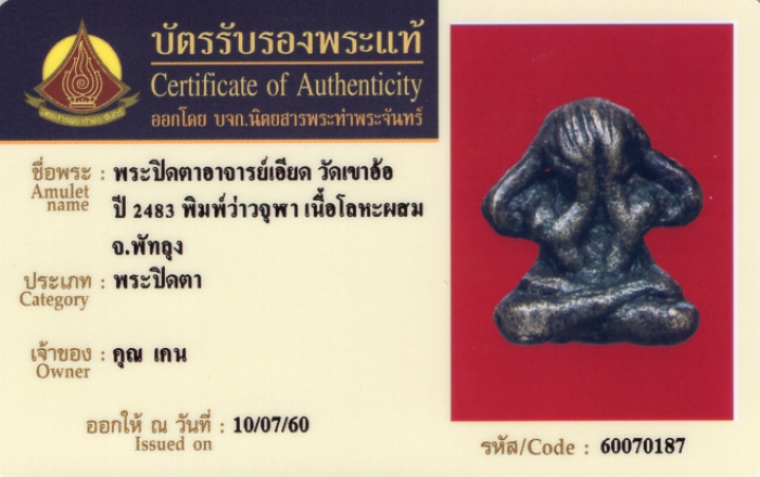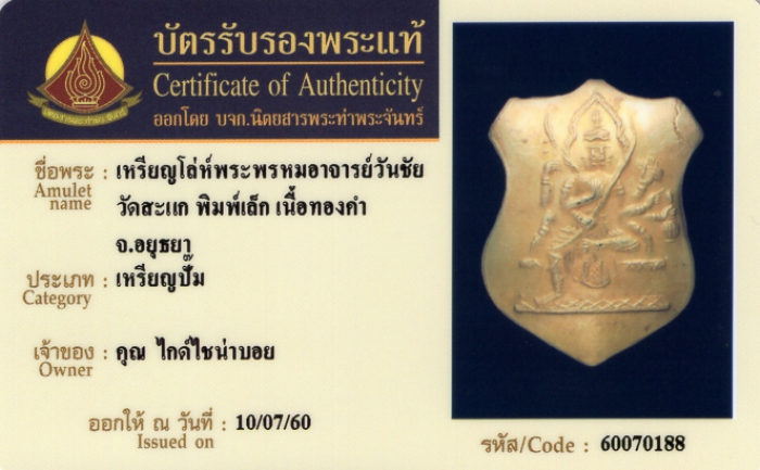 ค้นหาใบการันตีพระแท้
