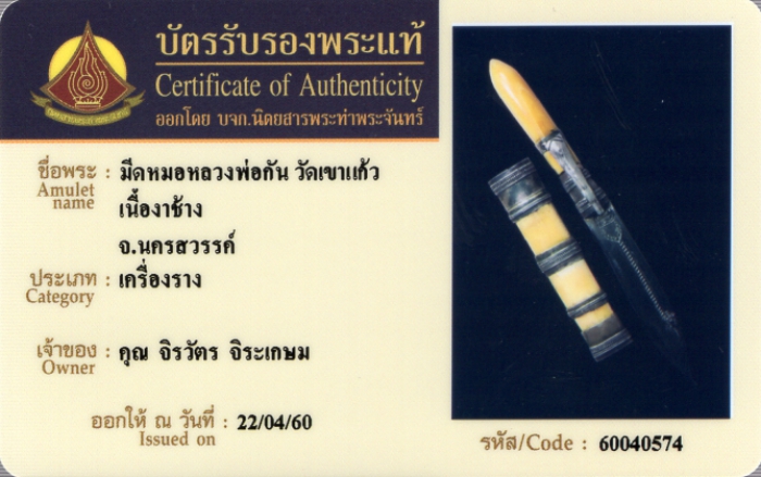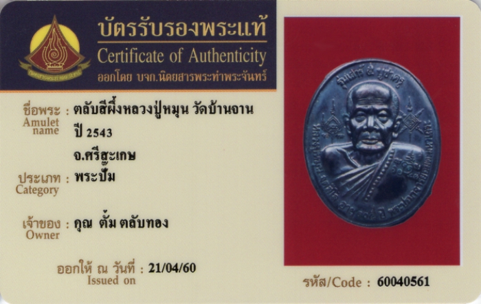 ค้นหาใบการันตีพระแท้