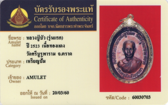 ค้นหาใบการันตีพระแท้