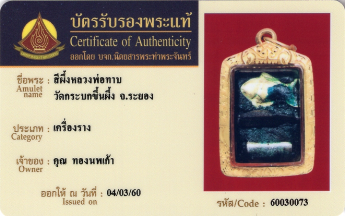 ค้นหาใบการันตีพระแท้
