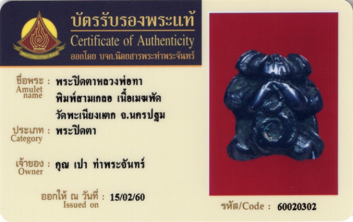 ค้นหาใบการันตีพระแท้