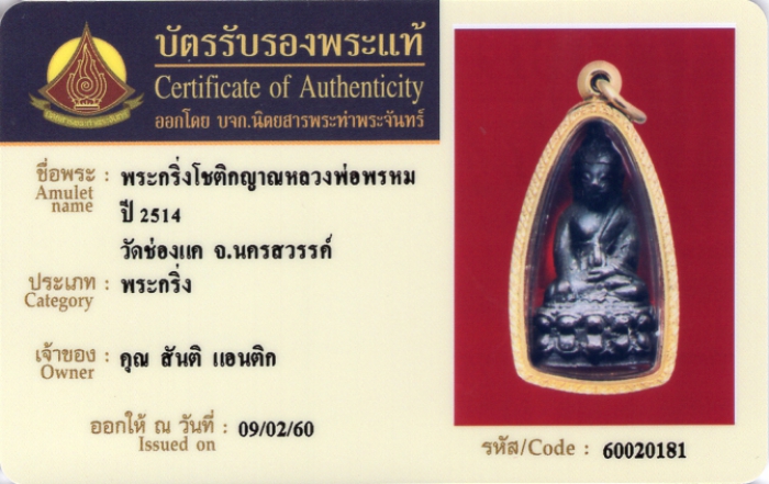ค้นหาใบการันตีพระแท้