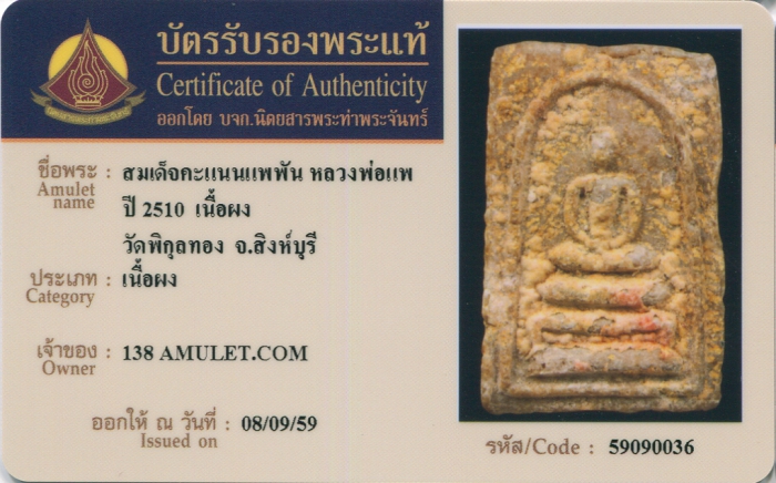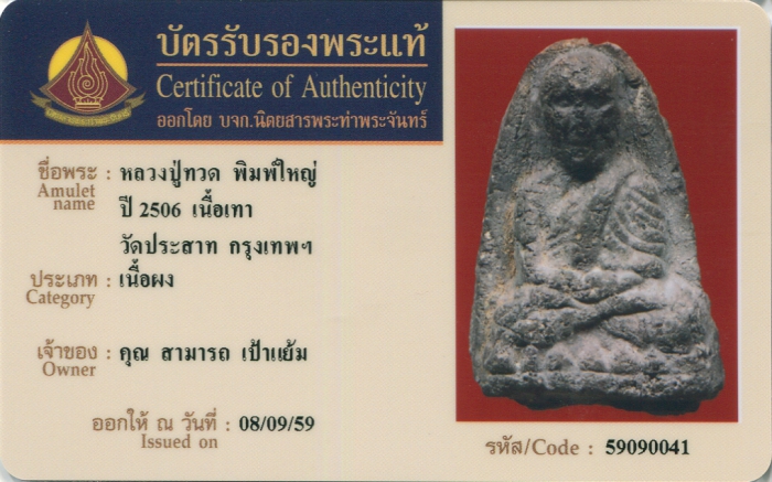 ค้นหาใบการันตีพระแท้