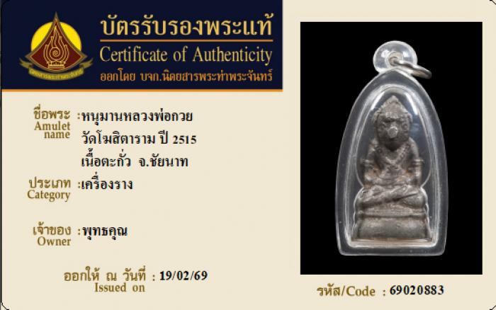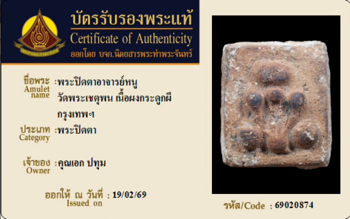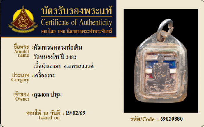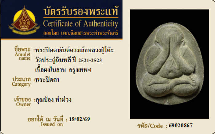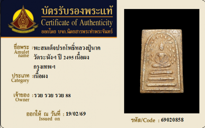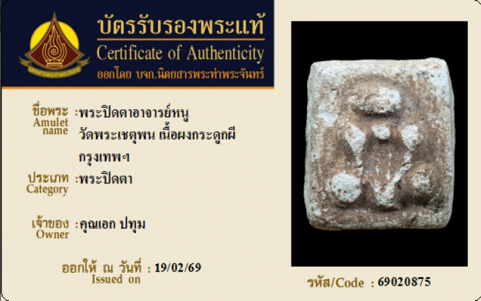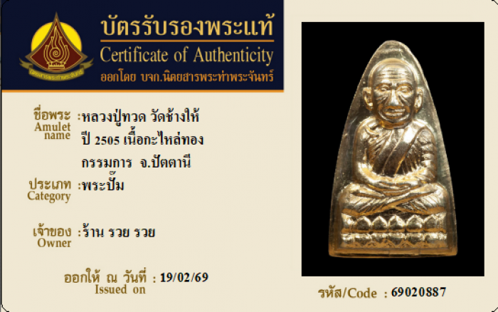 ค้นหาใบการันตีพระแท้