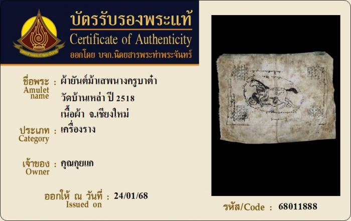 ค้นหาใบการันตีพระแท้