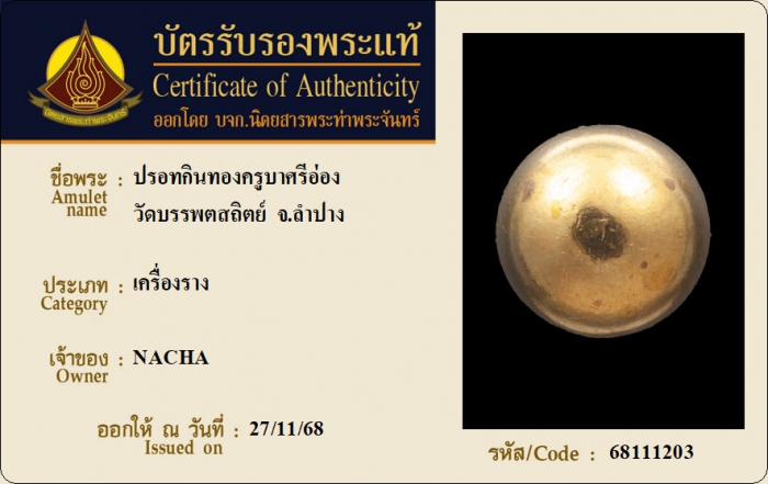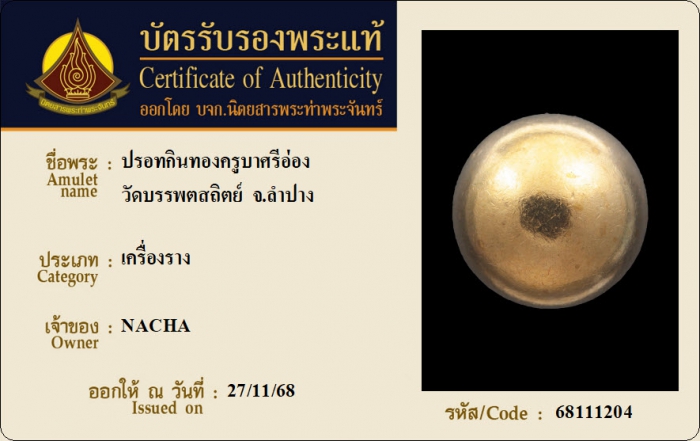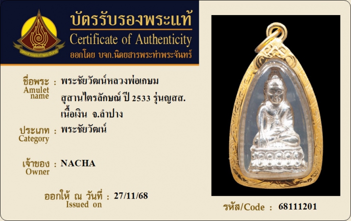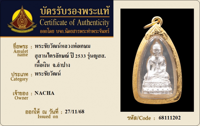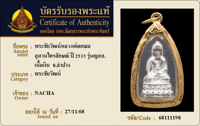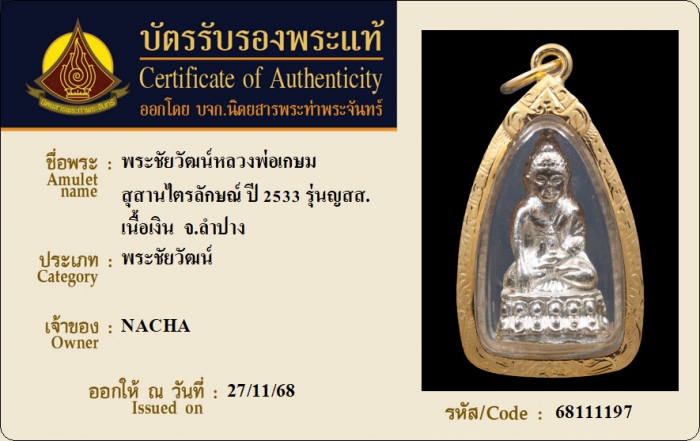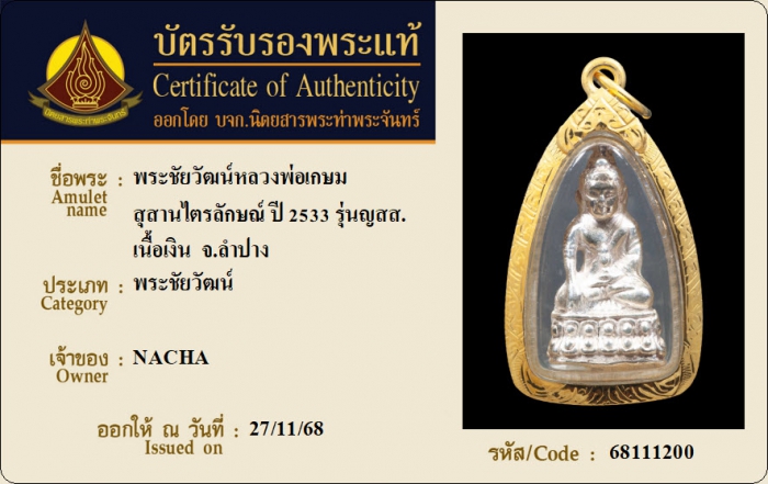 ค้นหาใบการันตีพระแท้