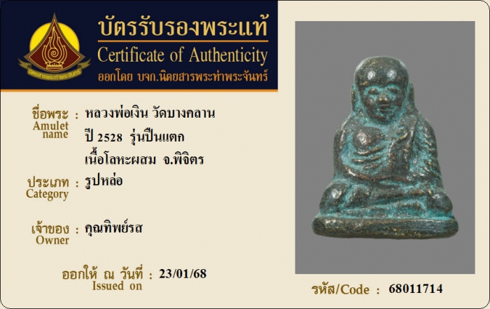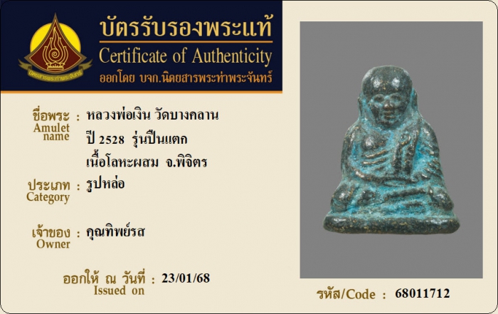 ค้นหาใบการันตีพระแท้