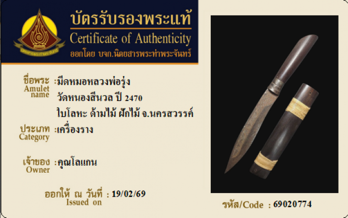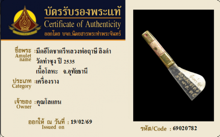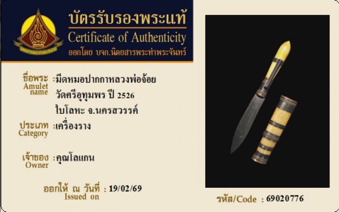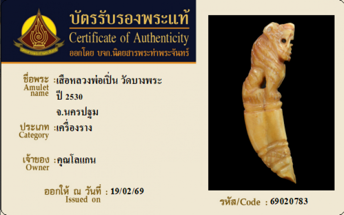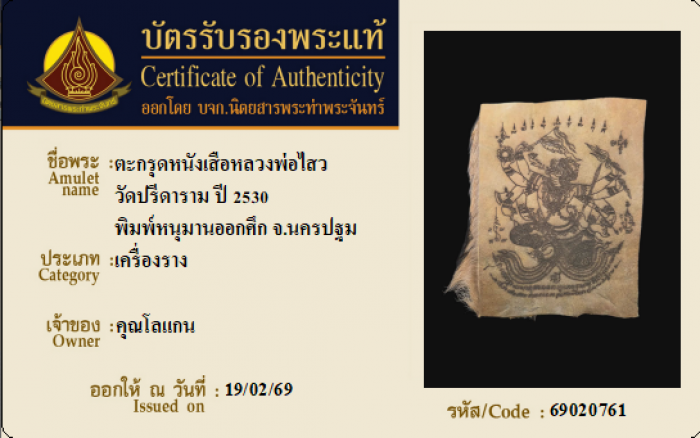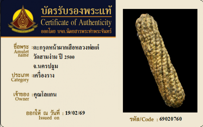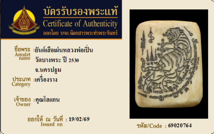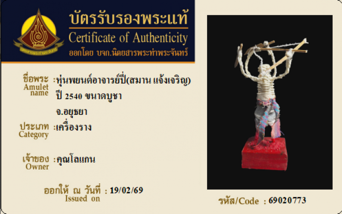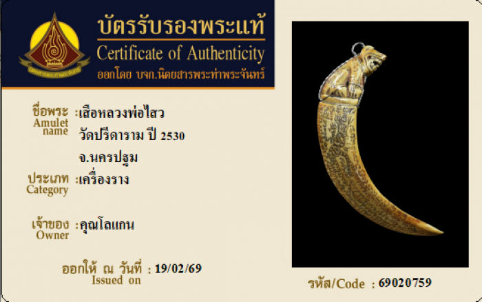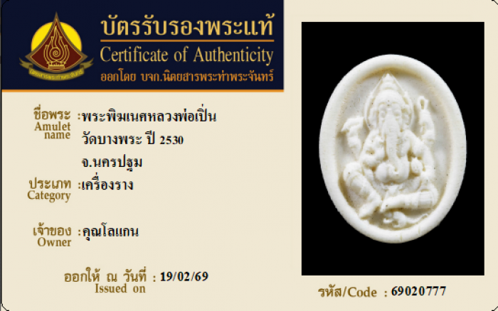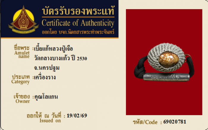 ค้นหาใบการันตีพระแท้