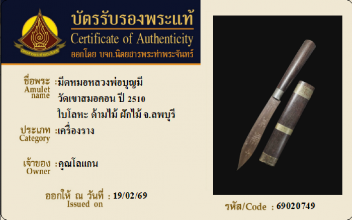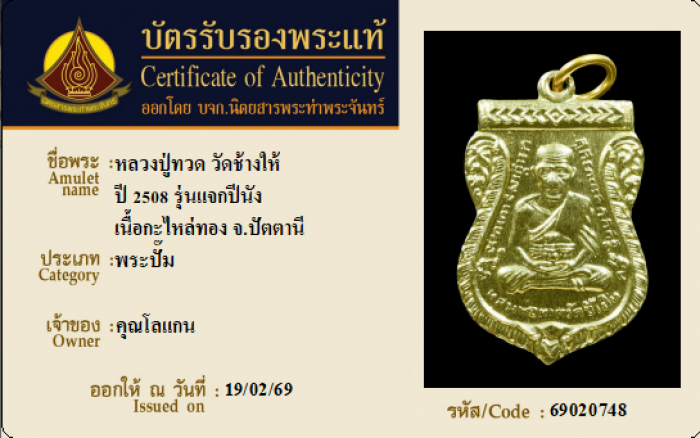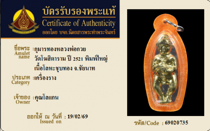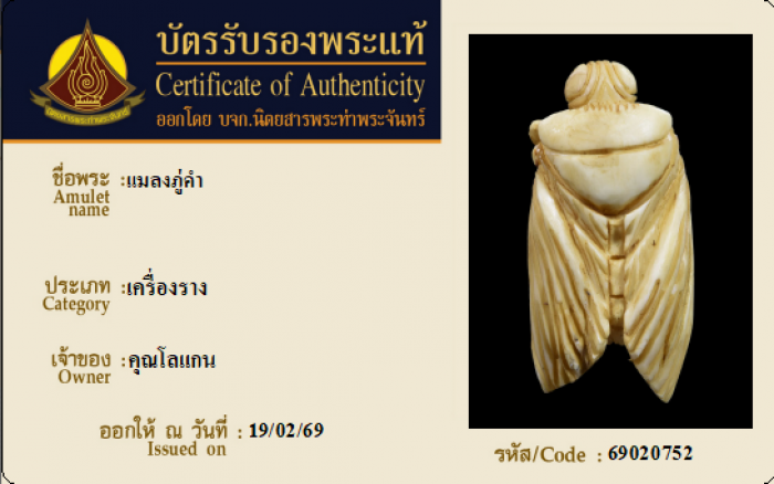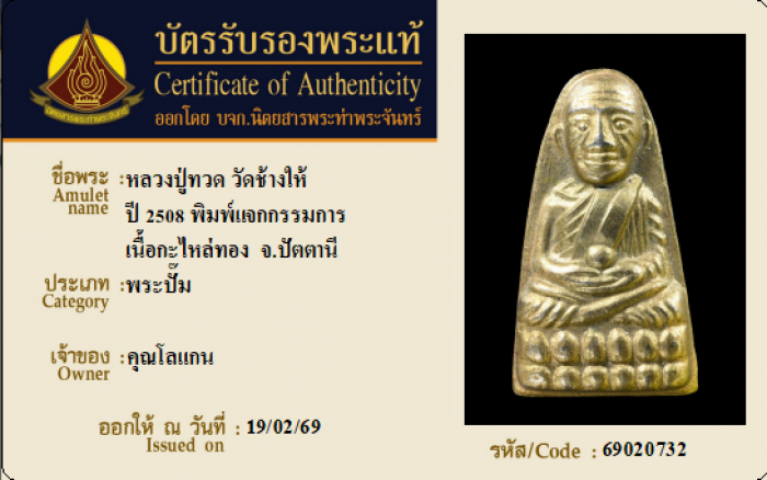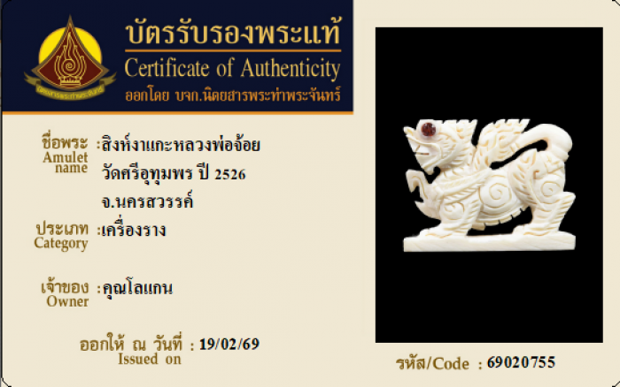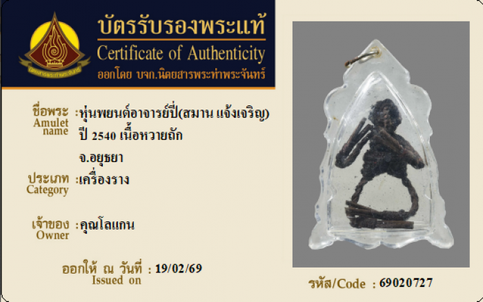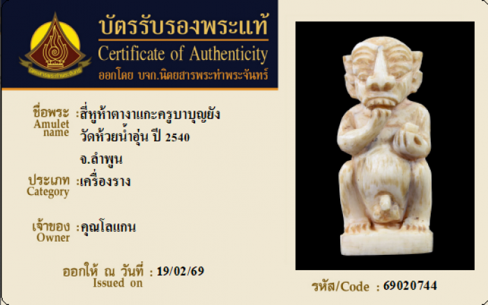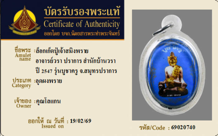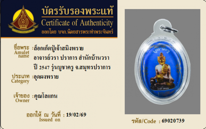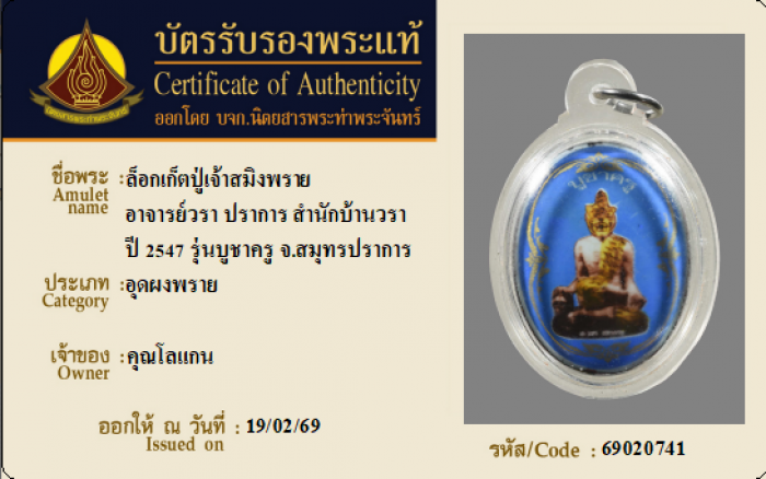 ค้นหาใบการันตีพระแท้