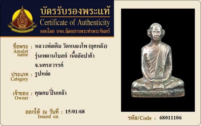 ค้นหาใบการันตีพระแท้