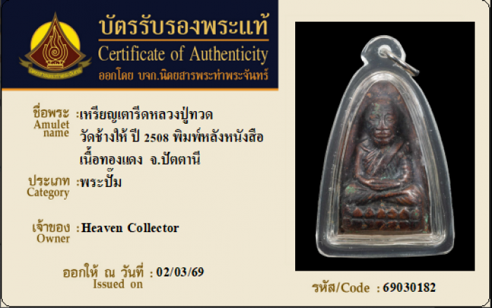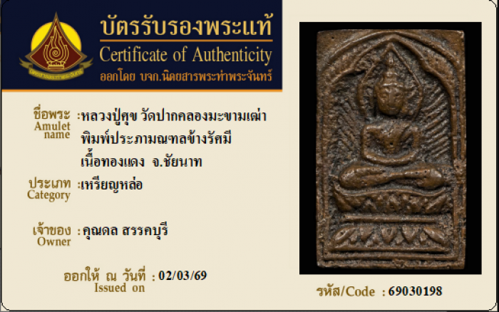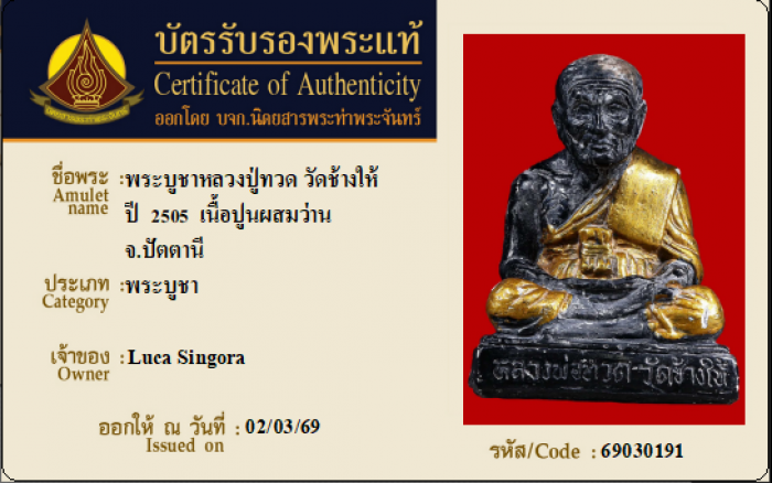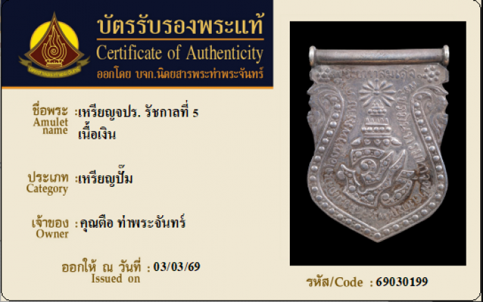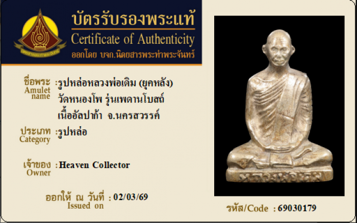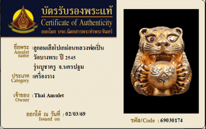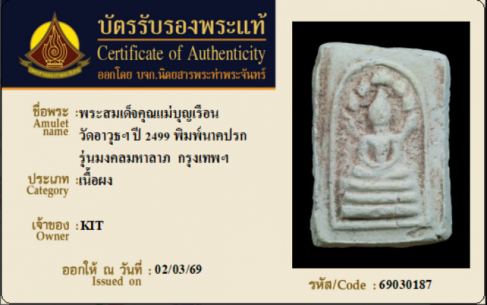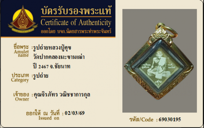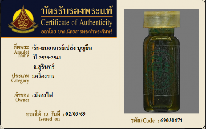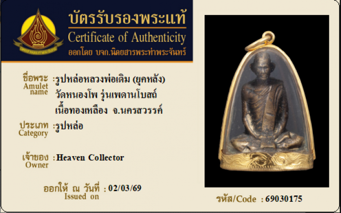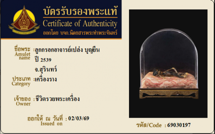 ค้นหาใบการันตีพระแท้
