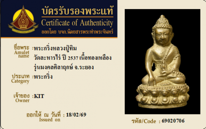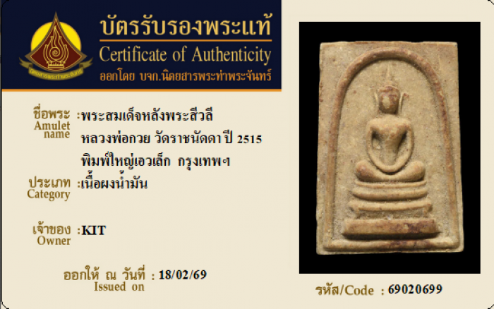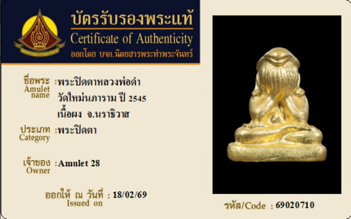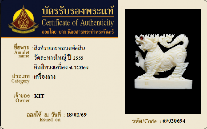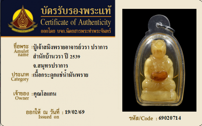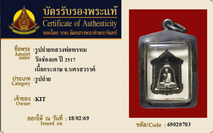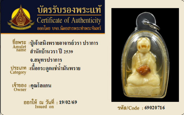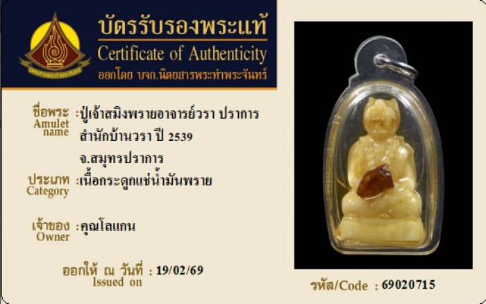 ค้นหาใบการันตีพระแท้