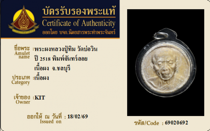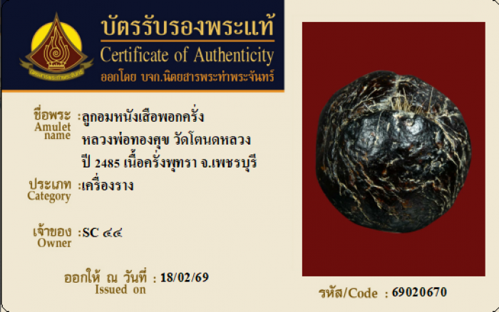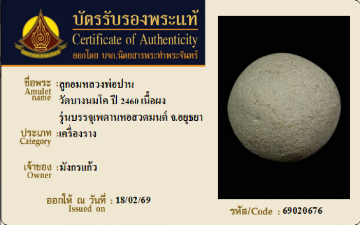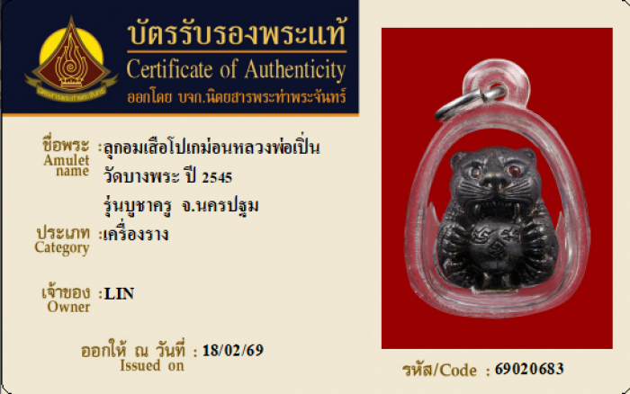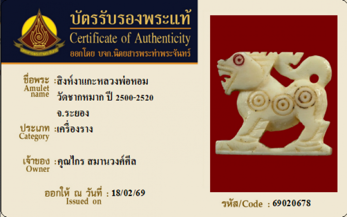 ค้นหาใบการันตีพระแท้