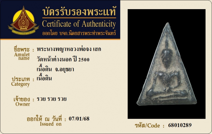 ค้นหาใบการันตีพระแท้