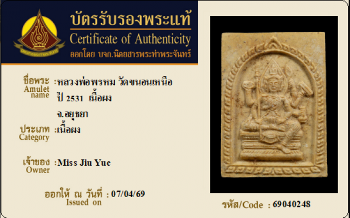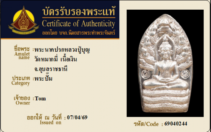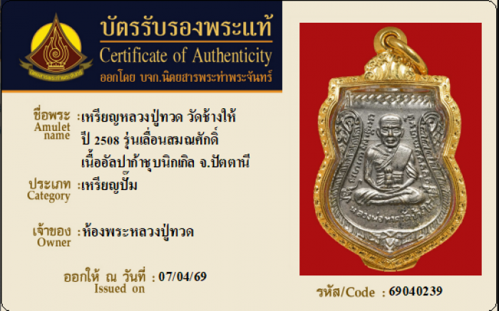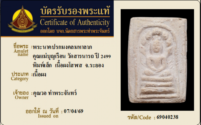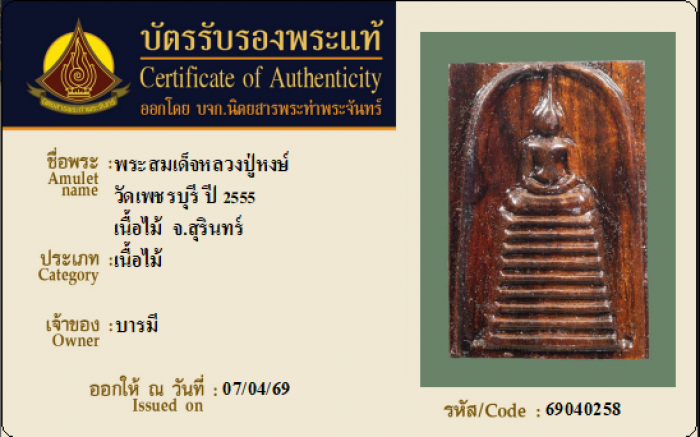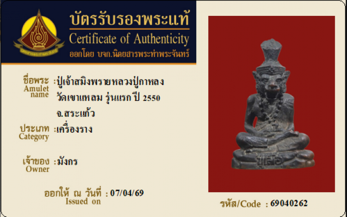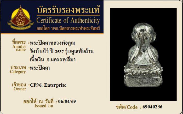 ค้นหาใบการันตีพระแท้