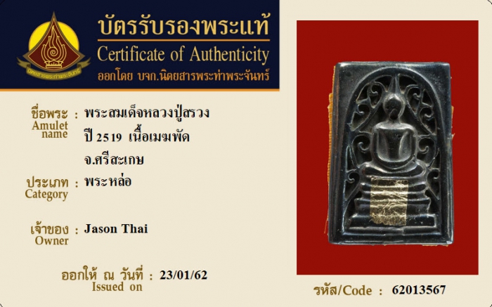 ค้นหาใบการันตีพระแท้