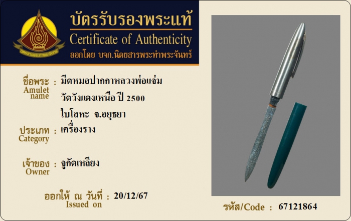 ค้นหาใบการันตีพระแท้