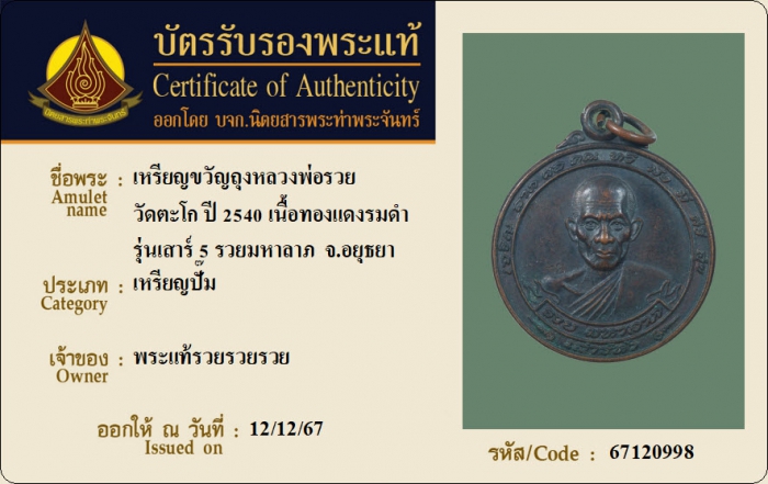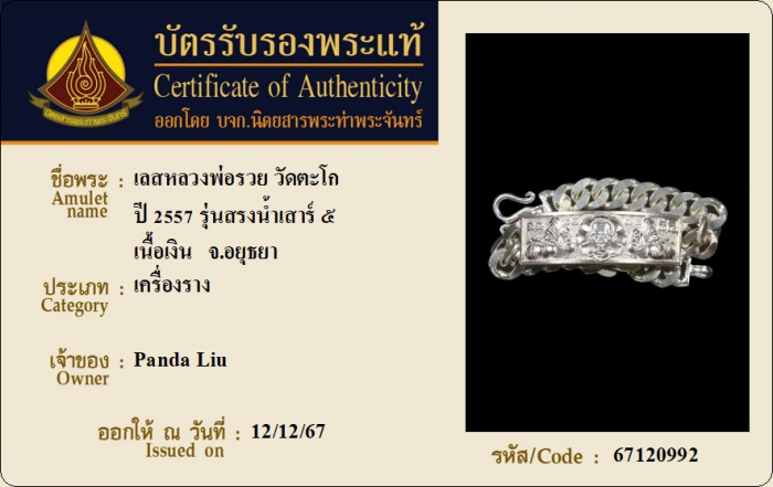 ค้นหาใบการันตีพระแท้