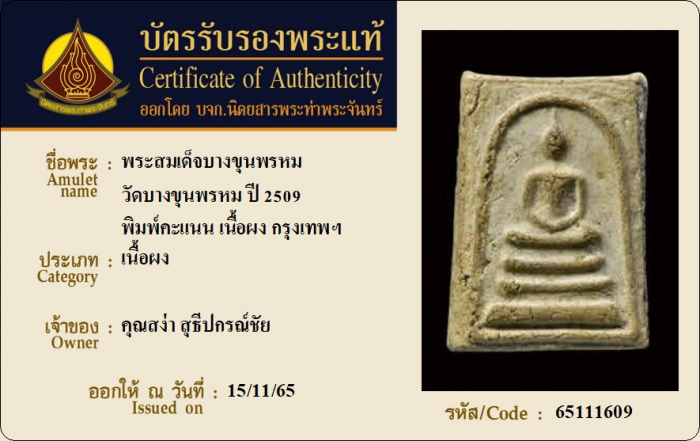 ค้นหาใบการันตีพระแท้