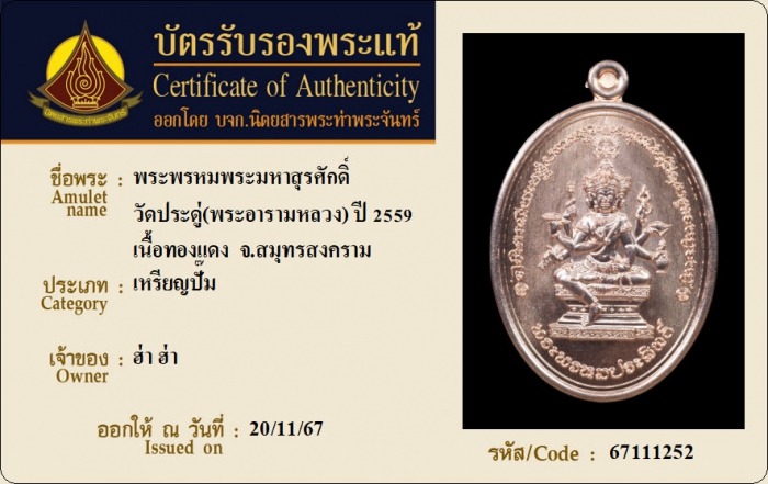 ค้นหาใบการันตีพระแท้