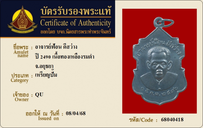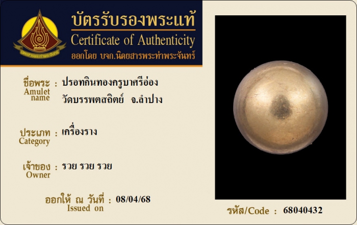 ค้นหาใบการันตีพระแท้