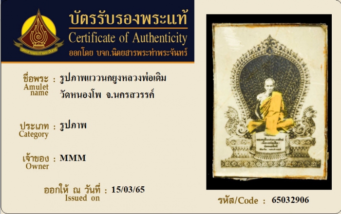 ค้นหาใบการันตีพระแท้