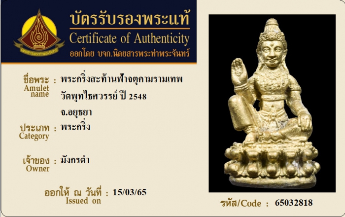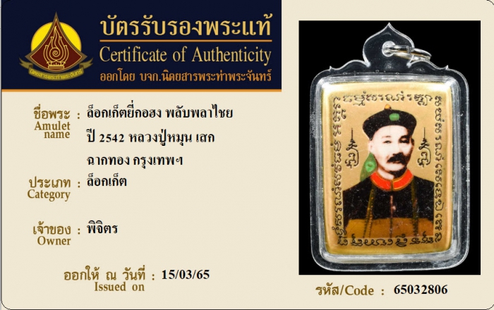 ค้นหาใบการันตีพระแท้