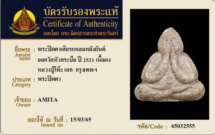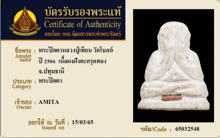 ค้นหาใบการันตีพระแท้