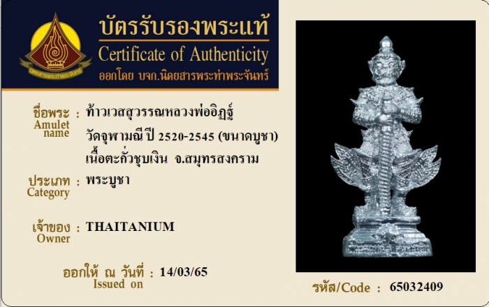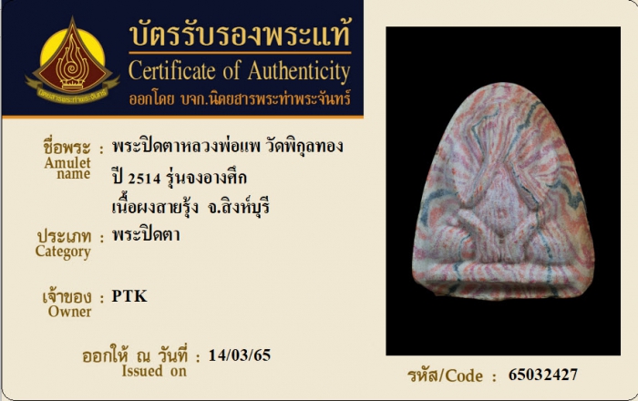 ค้นหาใบการันตีพระแท้
