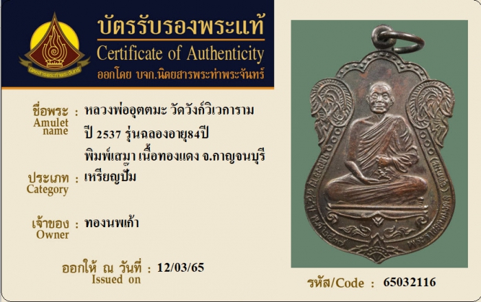 ค้นหาใบการันตีพระแท้