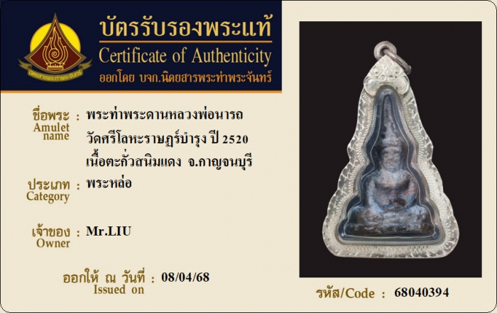 ค้นหาใบการันตีพระแท้