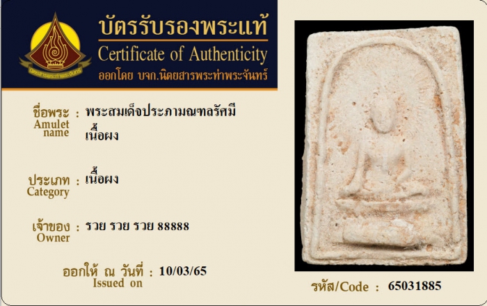 ค้นหาใบการันตีพระแท้