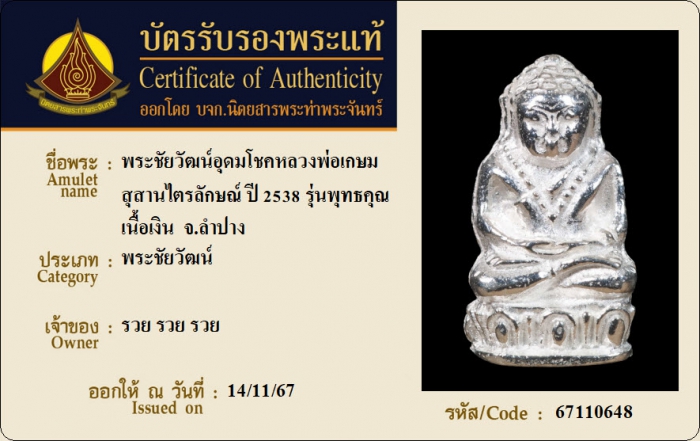 ค้นหาใบการันตีพระแท้