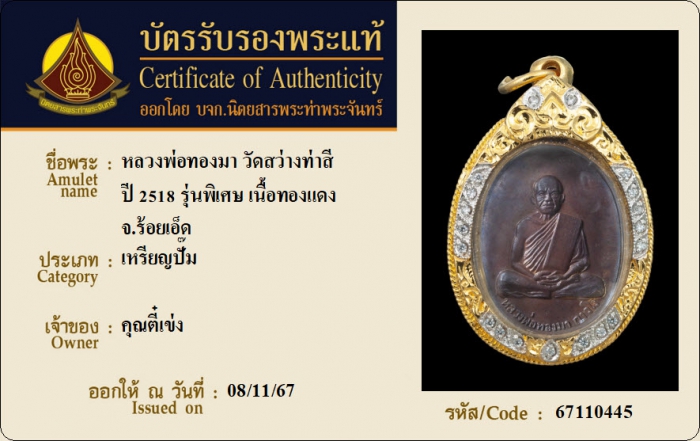 ค้นหาใบการันตีพระแท้