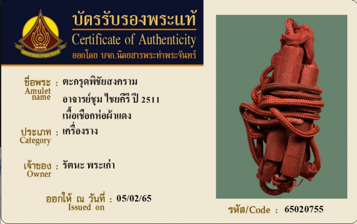 ค้นหาใบการันตีพระแท้