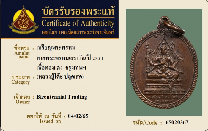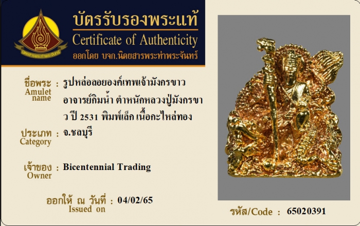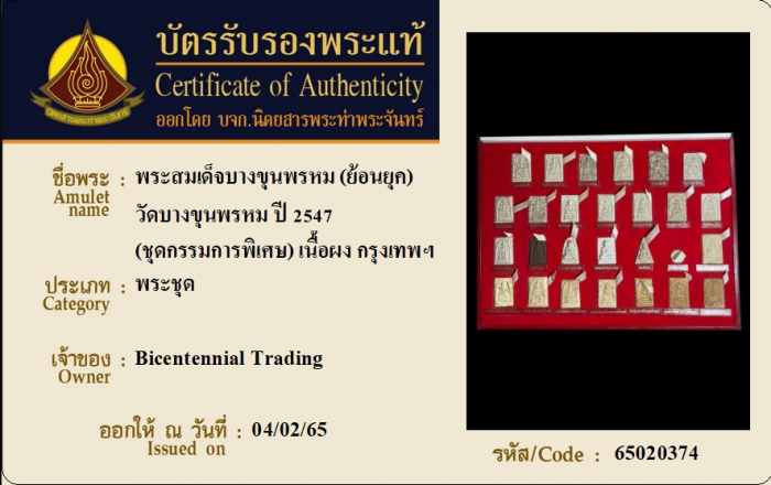 ค้นหาใบการันตีพระแท้