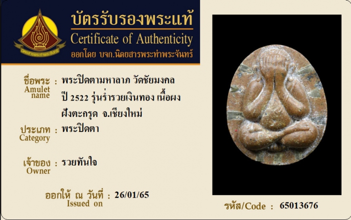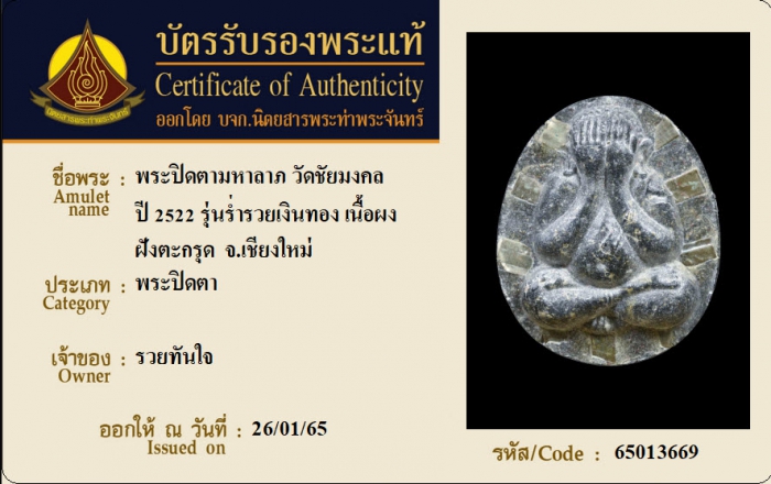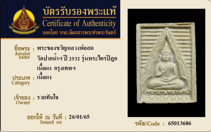 ค้นหาใบการันตีพระแท้
