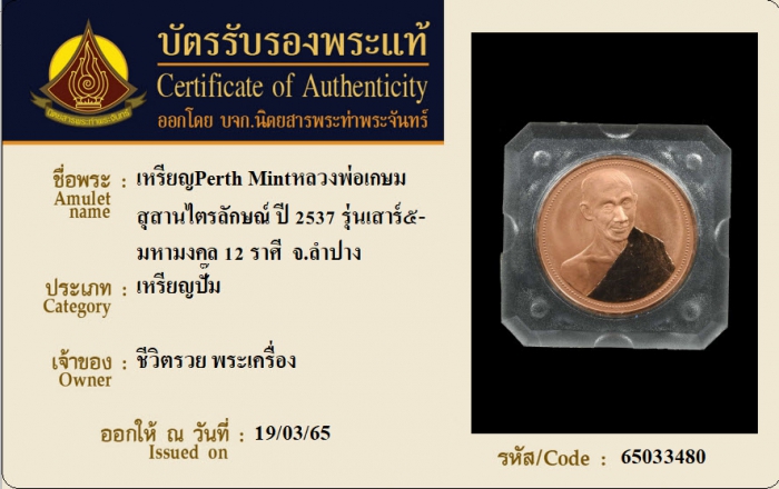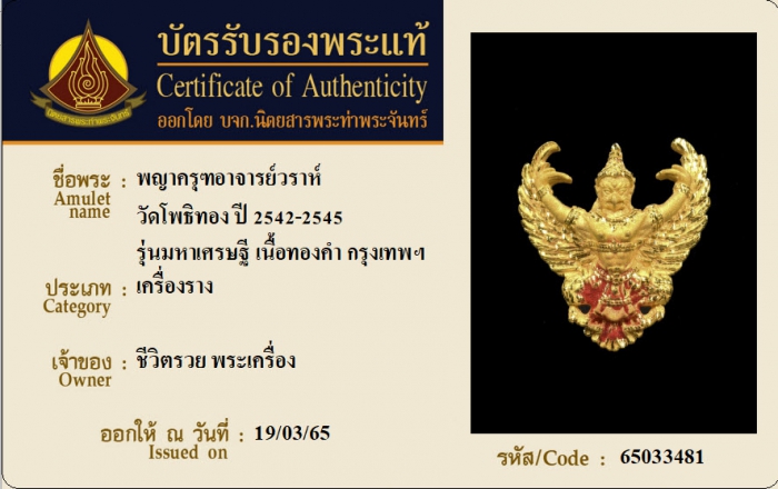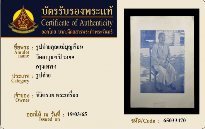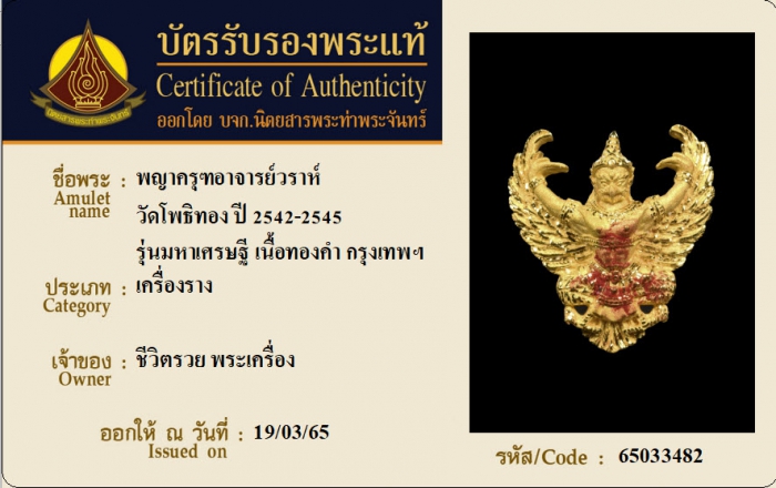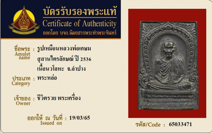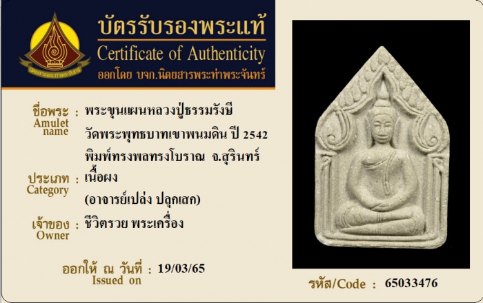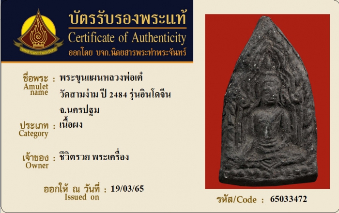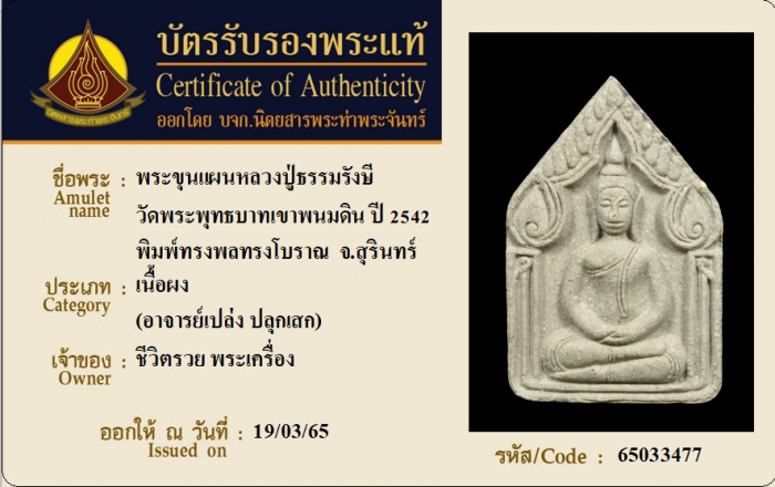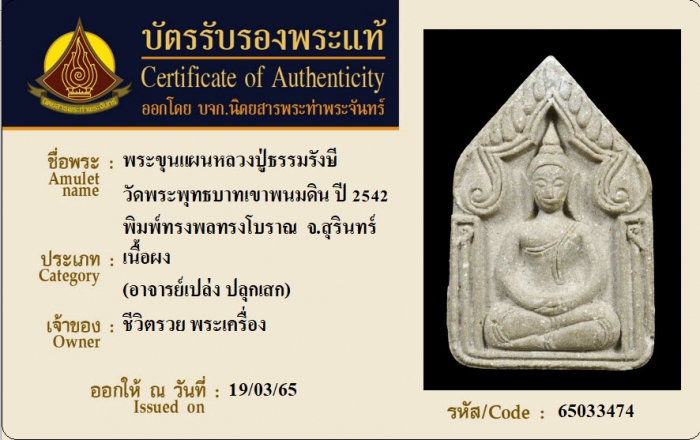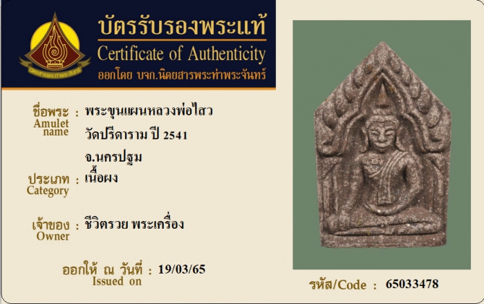 ค้นหาใบการันตีพระแท้